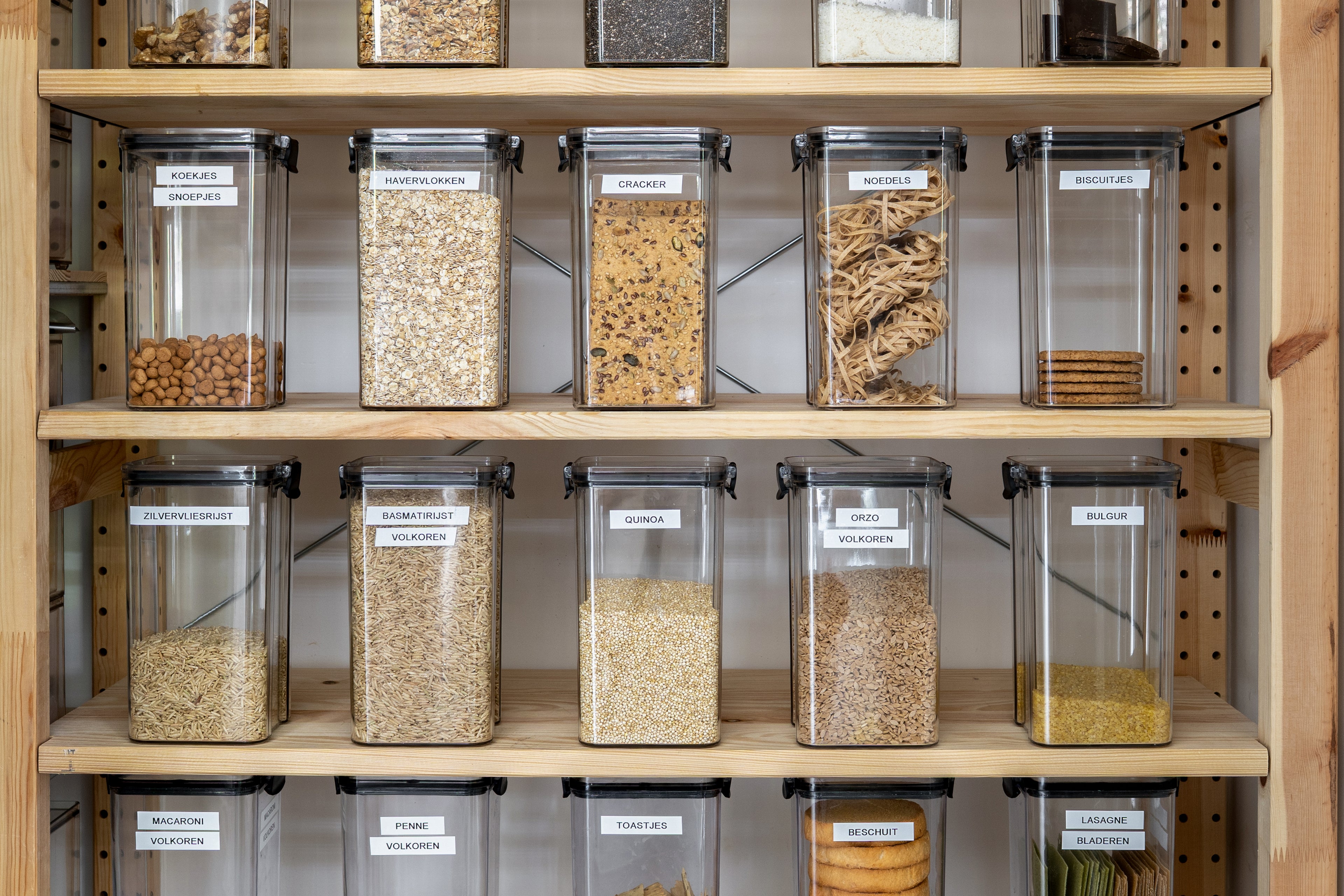 Losse zakken, gekreukte dozen, kruimels in je kast. Niet weten wat je nog hebt liggen. Het maakt je keuken rommelig en onwerkbaar. Met de transparante voorraadpotten van Sisty Organizing creëer je overzicht, structuur en rust in je voorraad.